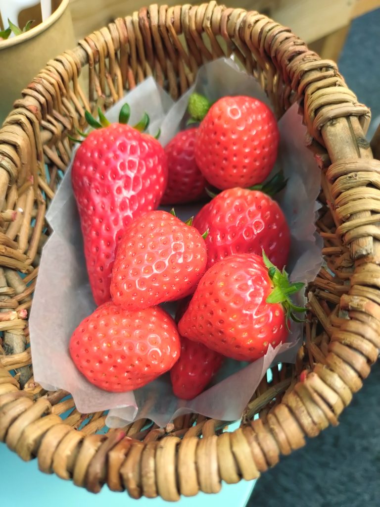 とってもきれいな農園で、いろいろな品種🍓があって、みんな「甘いな~」と昼食後にも関わらず、デザートは別腹のようで、たくさん食べ比べしていました。